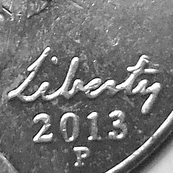 DESCRIPTION: Trail lines are seen from the word CENT. The offset direction is 150º. This die is coupled with an obverse trail die, 2012P-5DEO-001T.